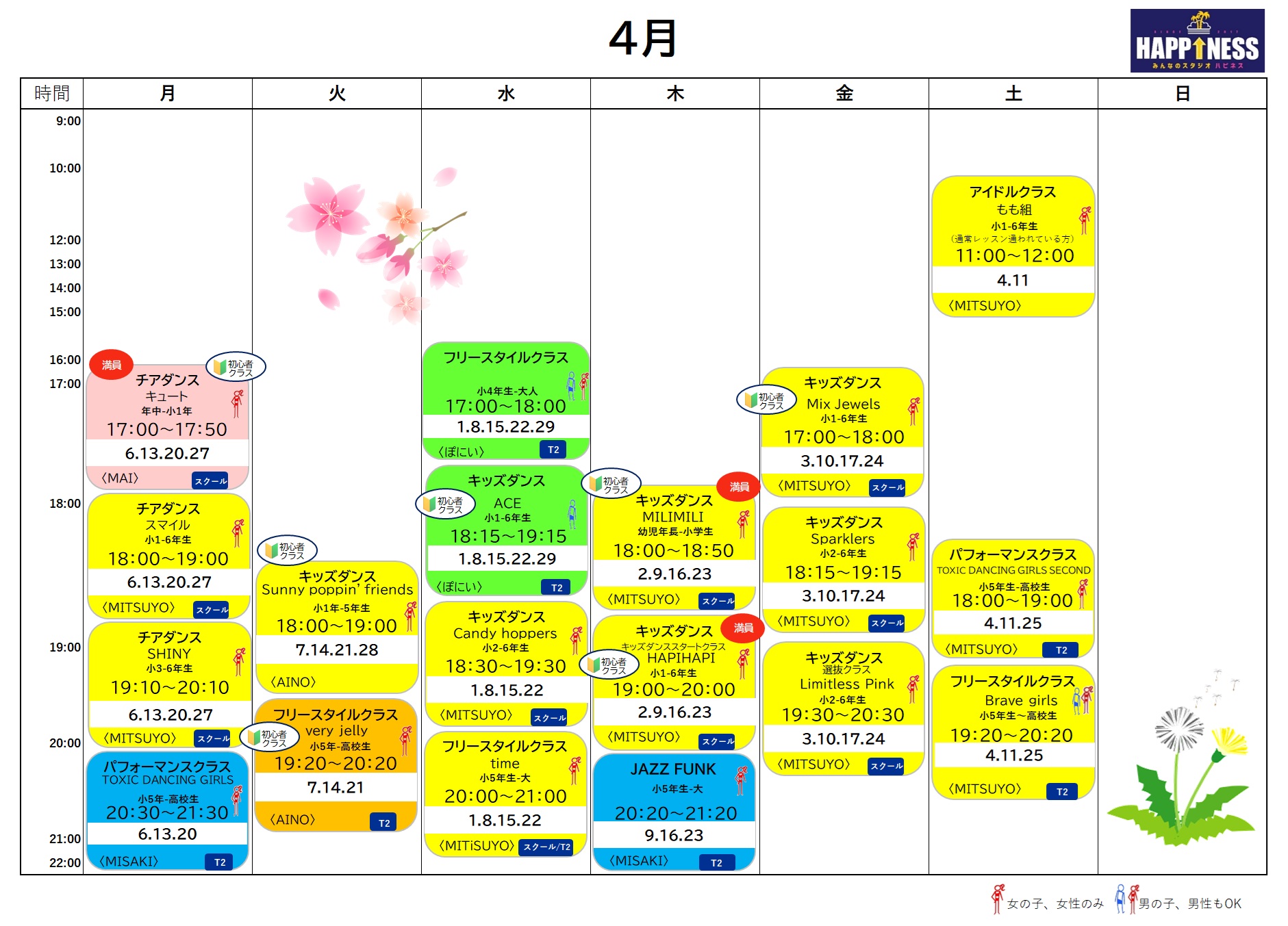 年齢に合わせて楽しい体操から始めて、遊びながらリズムの感覚を覚えていきます。 踊る基礎となるダウン、アップや、体の使い方の基礎となるアイソレーションを行い、 踊る楽しさを身につけていきましょう。オンラインスタートのクラスもございます。
